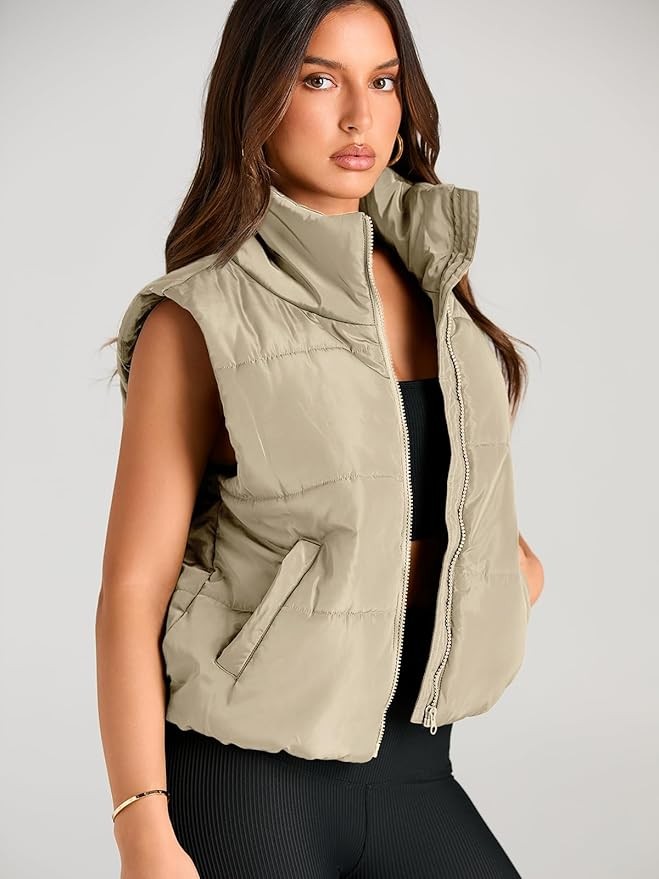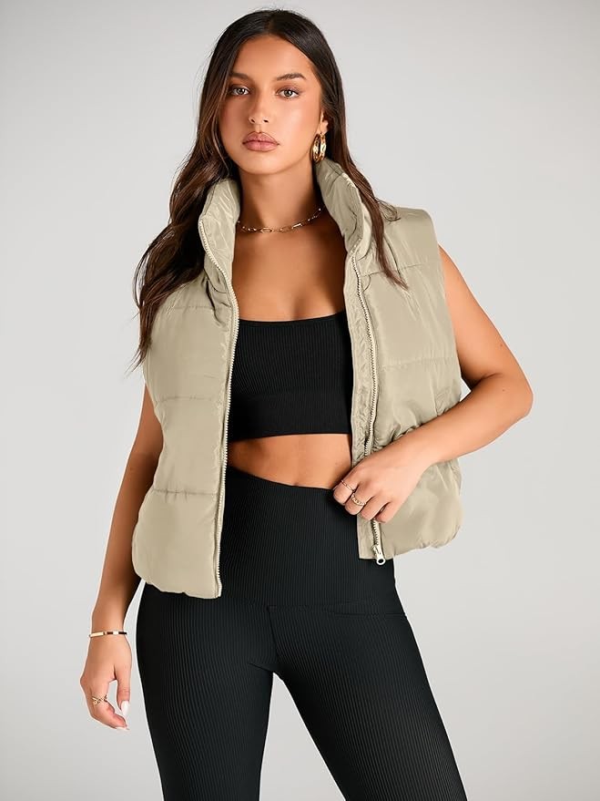 Feature:Women winter puffer vest, Stand-up Collar, Sleeveless, Zipper, Full zip,Y2k,Warm outwear,Spring fashion,Padded gilet.