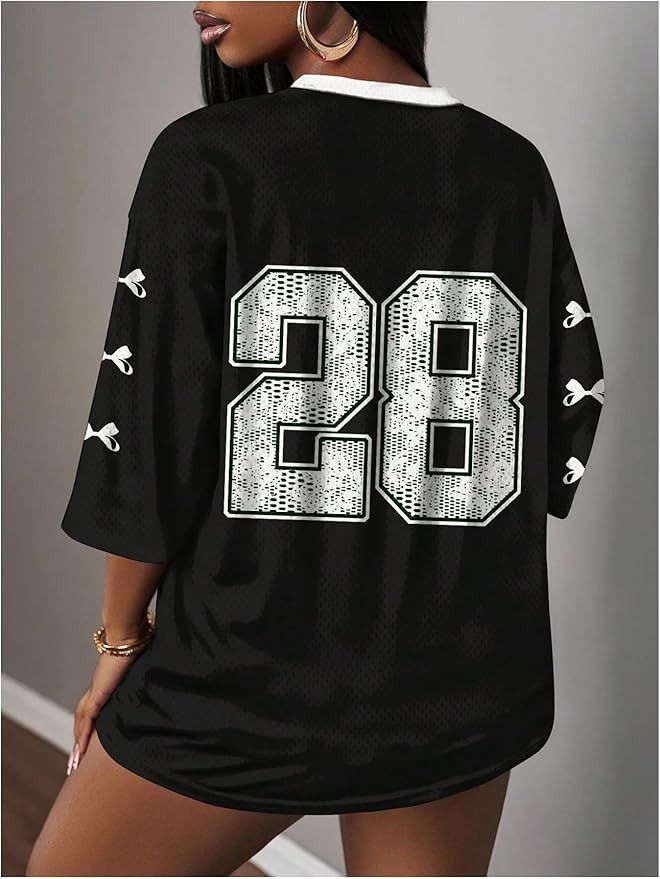 Features: Jersey shirts for women, number print, letter, graphic, v neck, 3/4 length sleeve, loose fit, mesh, casual, jersey top, jersey tee, jersey t shirts