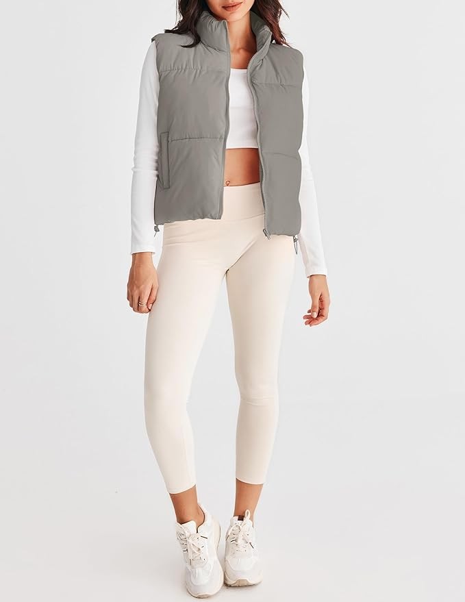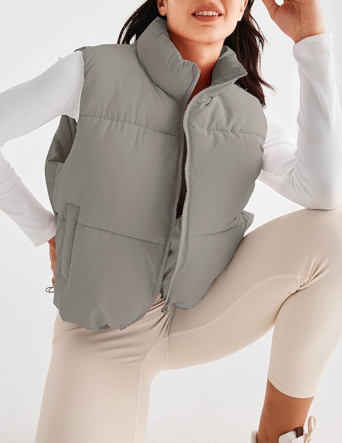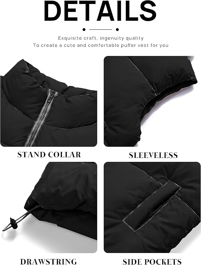 Feature:Women winter puffer vest, Stand-up Collar, Sleeveless, Zipper, Full zip,Y2k,Warm outwear,Spring fashion,Padded gilet.